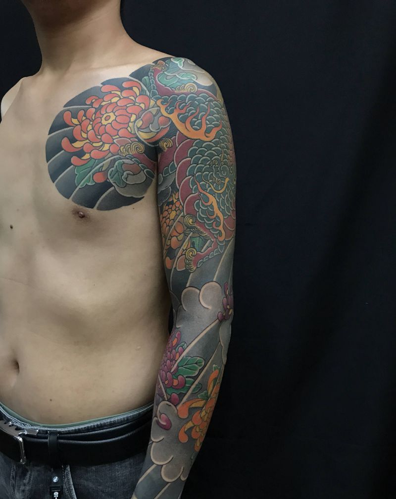 当前位置: 首页 >湖南省株洲市纹身店-株洲彫鹏刺青纹身图案>麒麟菊花纹身图片_手臂老传统纹身图案