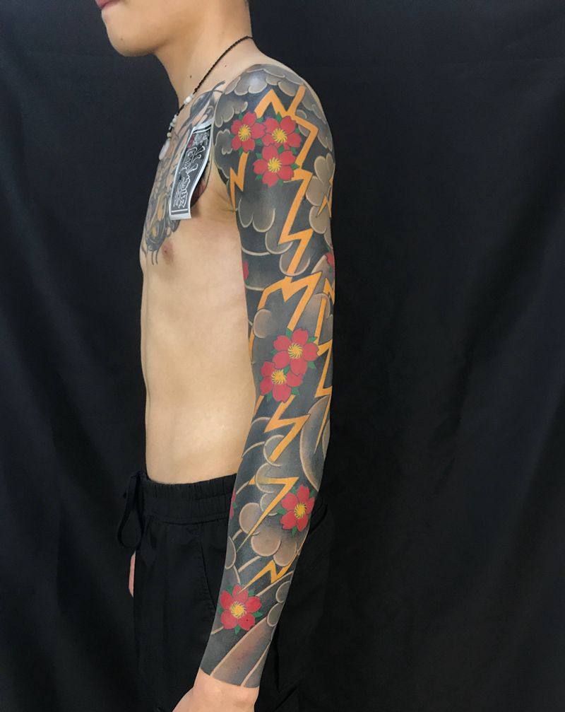当前位置: 首页 >湖南省株洲市纹身店-株洲彫鹏刺青纹身图案>雷纹身图片_手臂老传统纹身图案