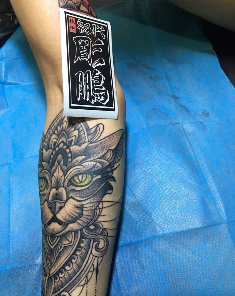 • T网红王老大花腿龙纹身图片_腿部新传统纹身图案