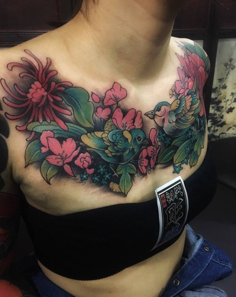 • 女性大花胸纹身_43张霸气漂亮的女性大花胸纹身图案作品