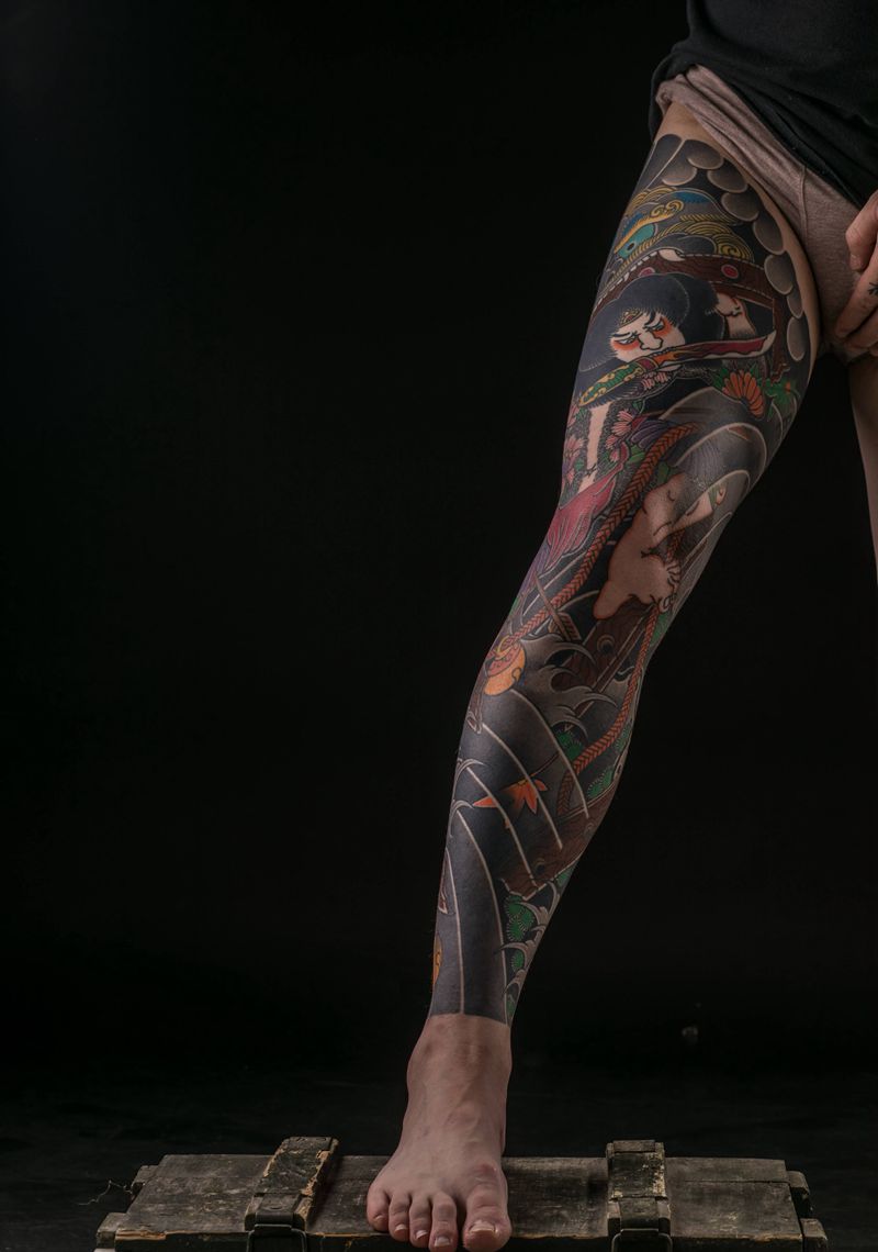 • T网红王老大花腿龙纹身图片_腿部新传统纹身图案