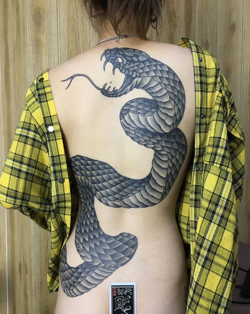 当前位置: 首页 >湖南省株洲市纹身店-株洲彫鹏刺青纹身图案>蛇纹身图片_背部点刺纹身图案