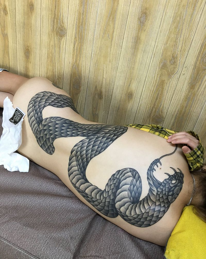 当前位置: 首页 >湖南省株洲市纹身店-株洲彫鹏刺青纹身图案>蛇纹身图片_背部点刺纹身图案