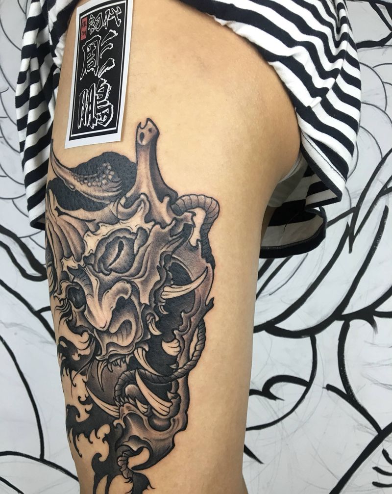般若纹身图片_腿部新传统纹身图案