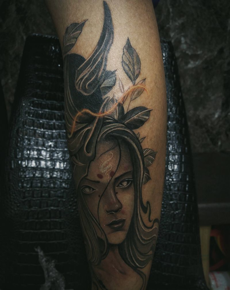 • T网红王老大花腿龙纹身图片_腿部新传统纹身图案