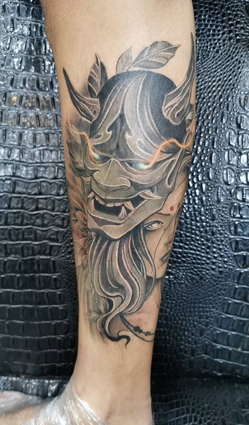• T网红王老大花腿龙纹身图片_腿部新传统纹身图案