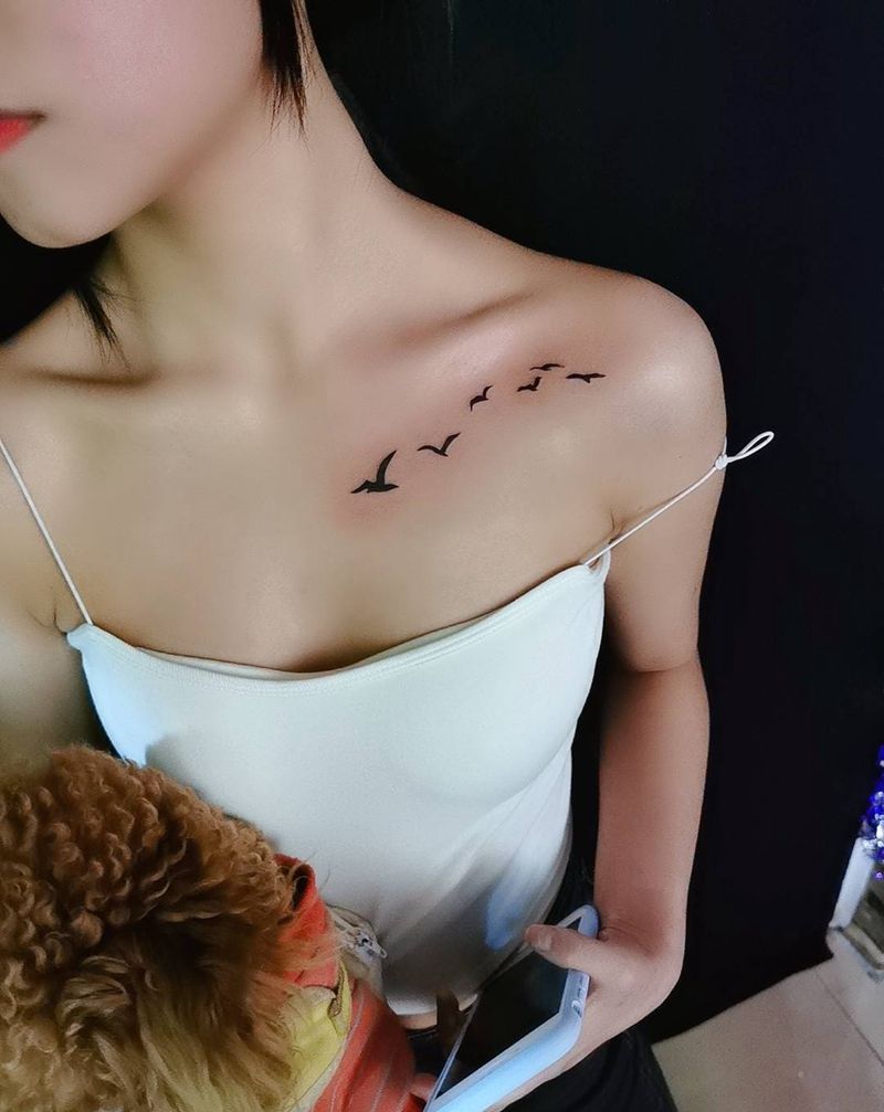 女神锁骨小燕子纹身图片_胸部纹身图案