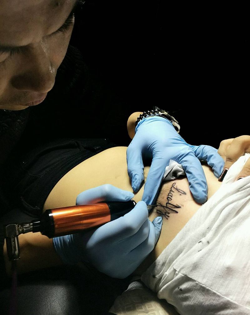 • T关于私处得爱!纹身图片_成品腹部清新字符图腾纹身图案