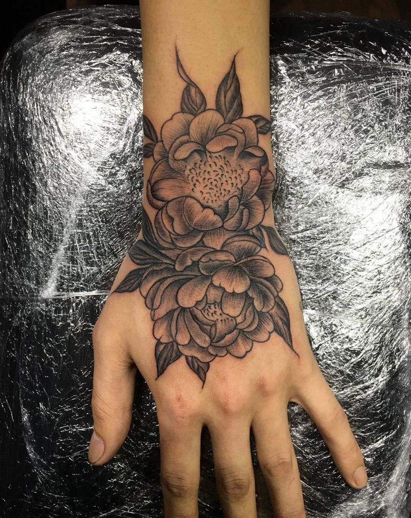 手背遮盖烫伤疤痕纹身图片_手臂手部纹身图案