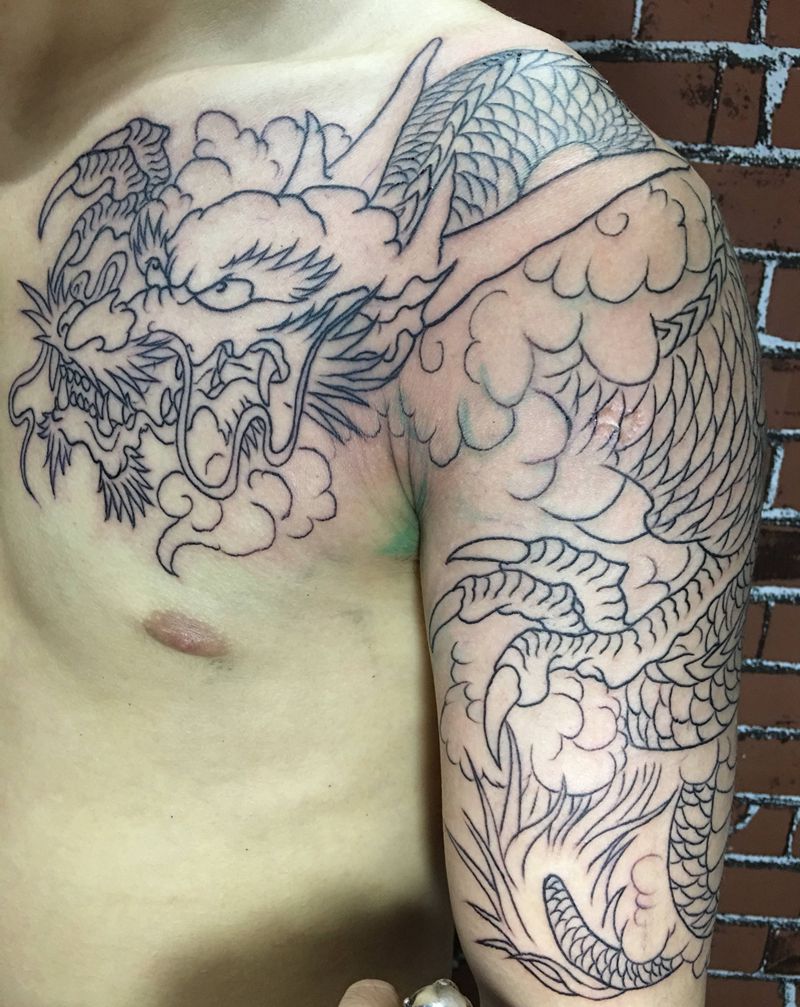 过肩龙线条,下次再过来上色纹身图片_肩部纹身图案