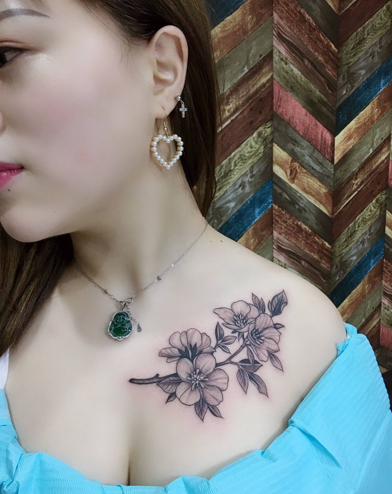 锁骨素花纹身图片_胸部纹身图案