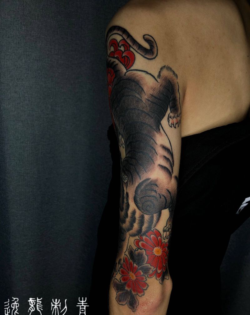 是我喜欢的感觉纹身图片_手臂老传统老虎菊花纹身图案