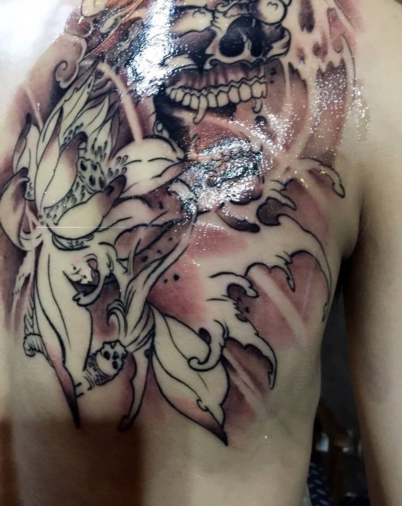 • 女性大花胸纹身_43张霸气漂亮的女性大花胸纹身图案作品