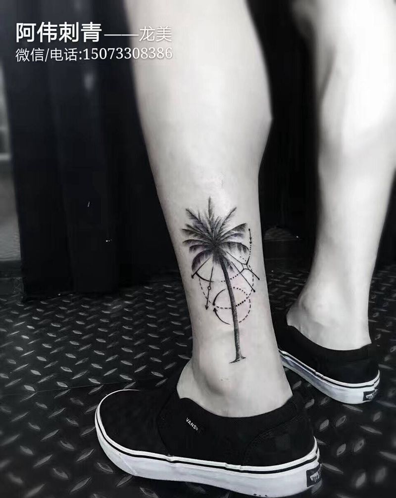 椰子树纹身图片_脚部腿部几何植物静物纹身图案