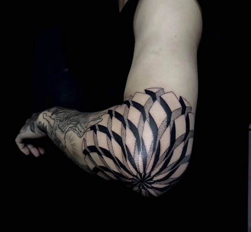 手肘,几何,点刺纹身图片_手部点刺几何纹身图案