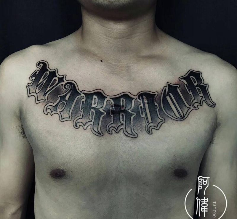 疤痕遮盖纹身图片_成品胸部欧美字符纹身图案