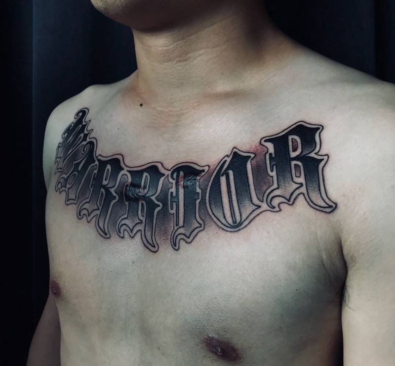 疤痕遮盖纹身图片_成品胸部欧美字符纹身图案