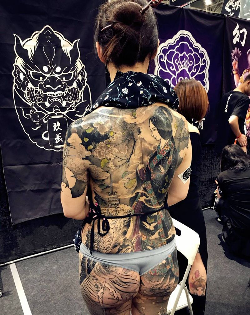 • 黑灰满背纹身图案