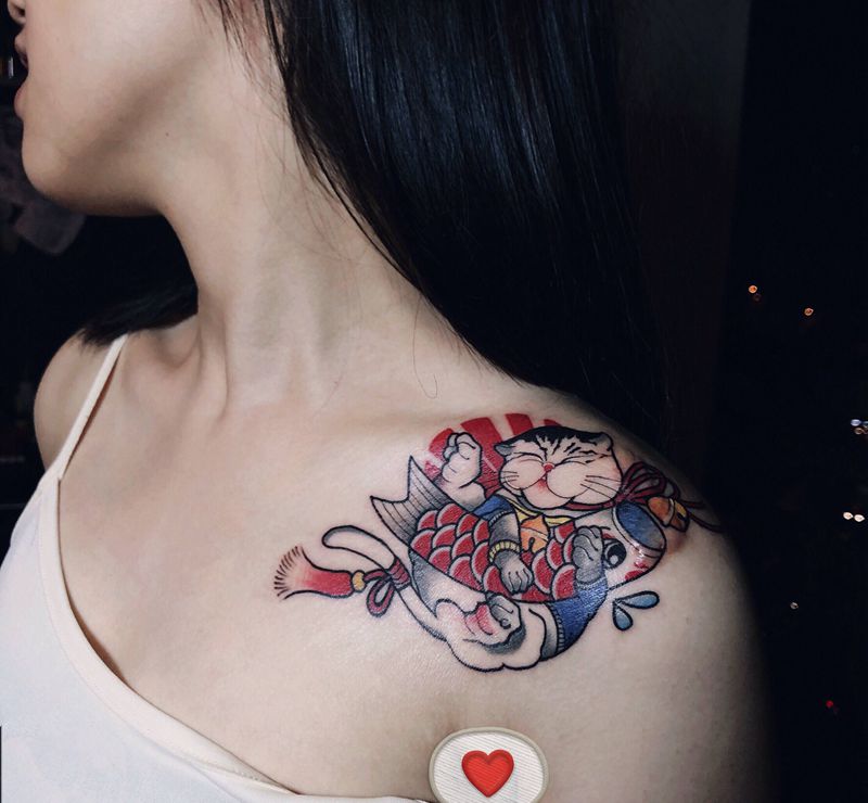 疤痕遮盖纹身图片_肩部New School纹身图案