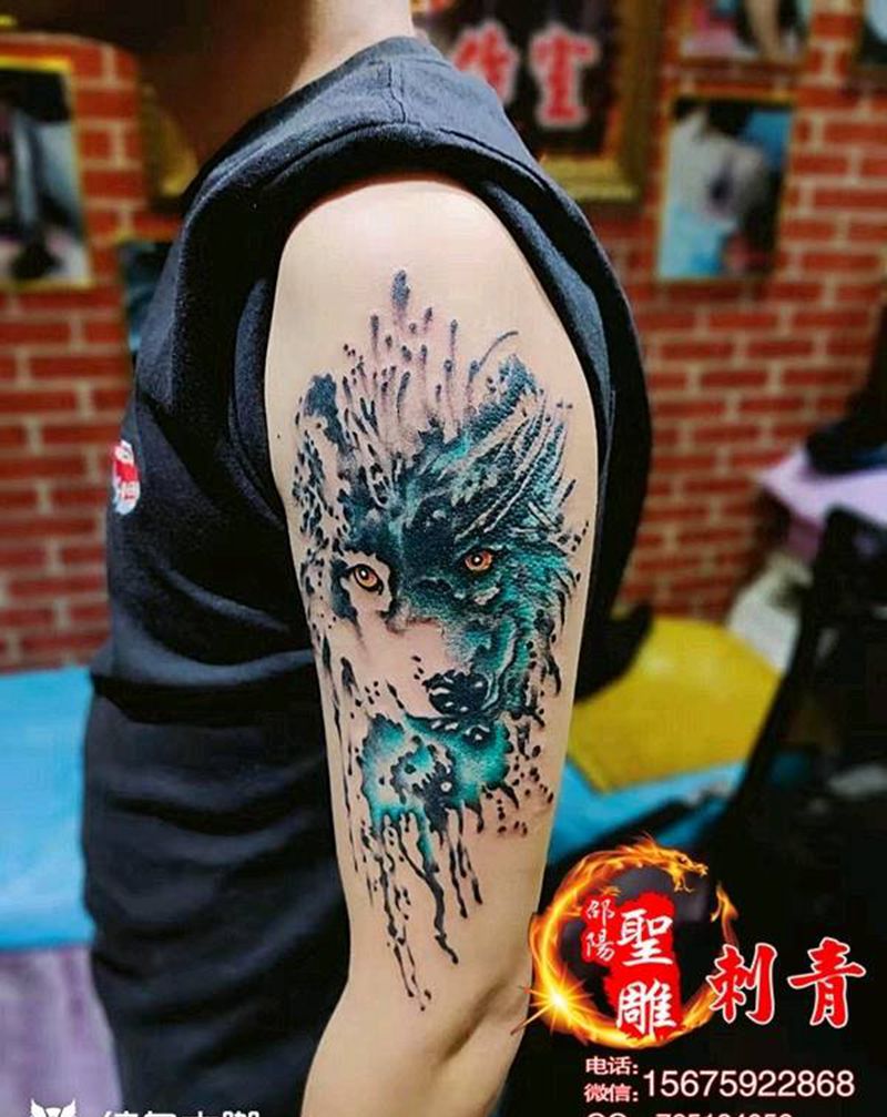 当前位置: 首页 >湖南省邵阳市纹身店-邵阳聖雕刺青纹身图案>狼道..水彩泼墨风!纹身图片_手臂水彩水墨纹身图案