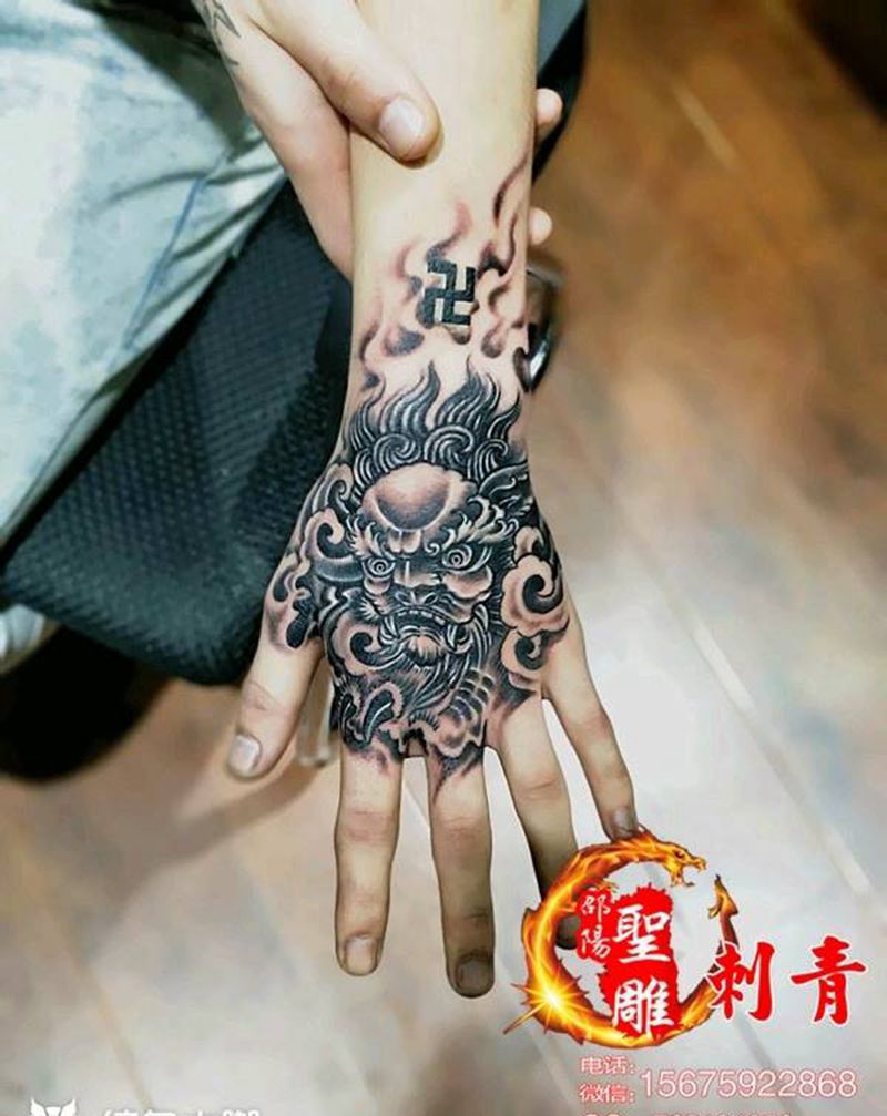 当前位置: 首页 >湖南省邵阳市纹身店-邵阳聖雕刺青纹身图案>手背纹身·瑞狮子!纹身图片