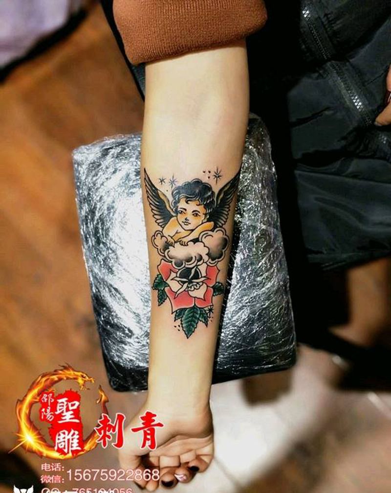 当前位置: 首页 >湖南省邵阳市纹身店-邵阳聖雕刺青纹身图案>爱神丘比特old school纹身图片_手臂欧美传统人物成品纹身图案