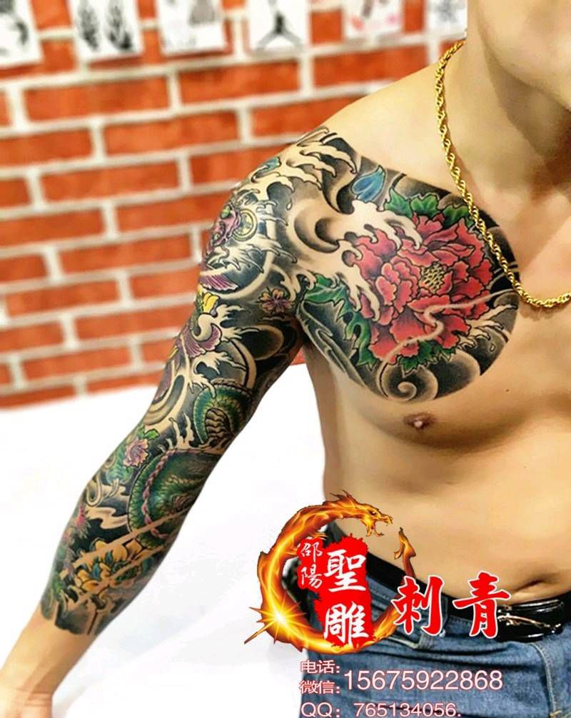 当前位置: 首页 >湖南省邵阳市纹身店-邵阳聖雕刺青纹身图案>全手花臂接半甲纹身图片