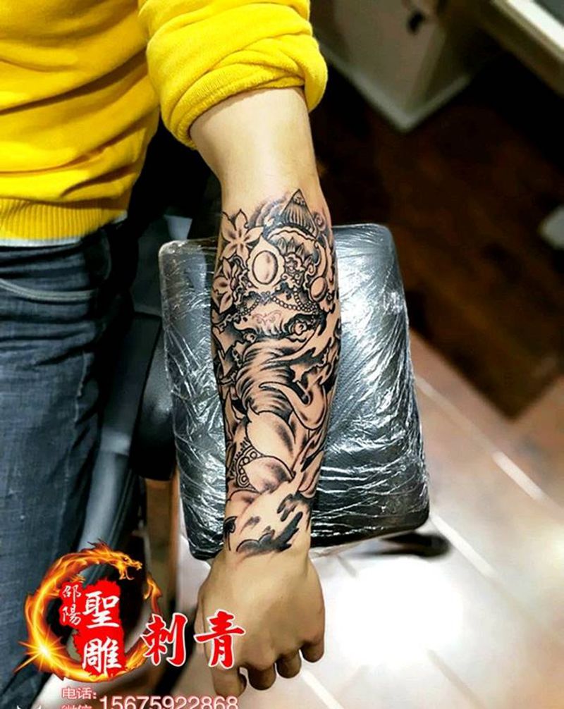 当前位置: 首页 >湖南省邵阳市纹身店-邵阳聖雕刺青纹身图案>象神花臂纹身图片_手臂传统成品纹身图案