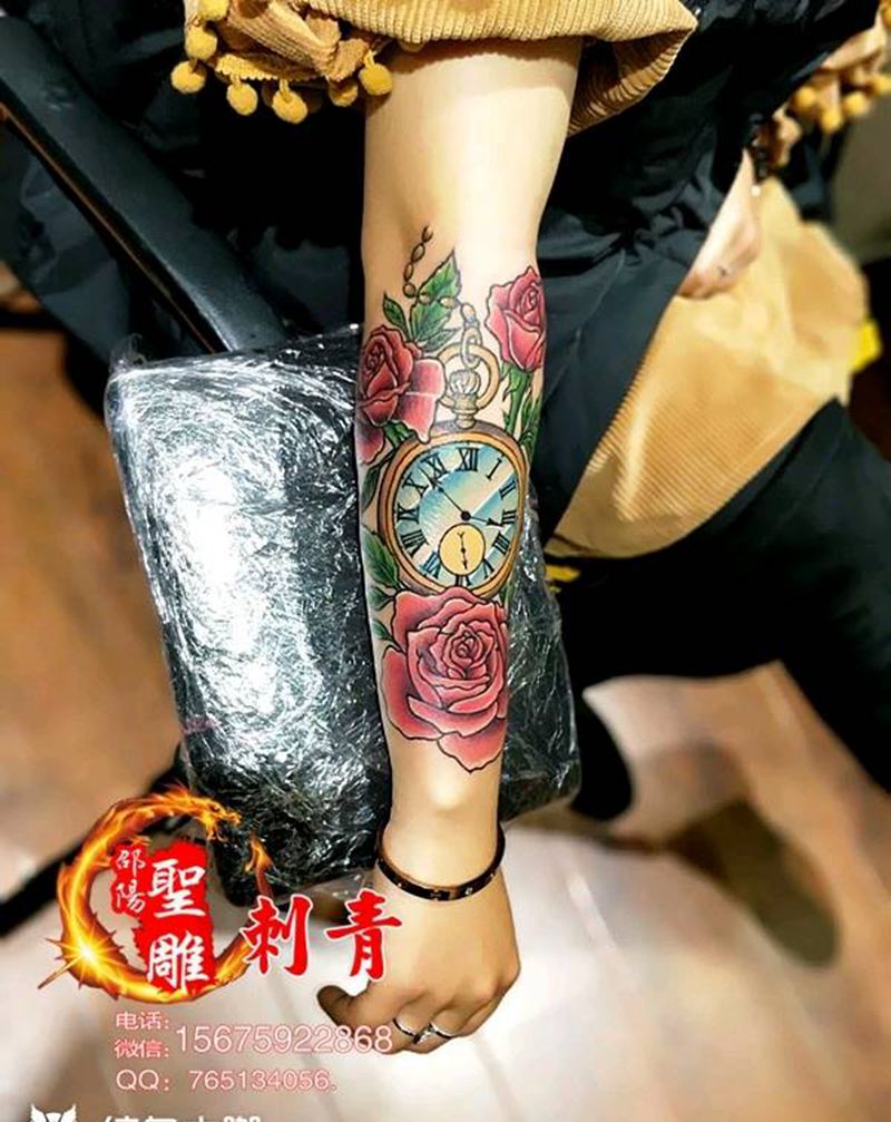 女神花臂-时光·玫瑰!纹身图片_手臂手部成品纹身图案