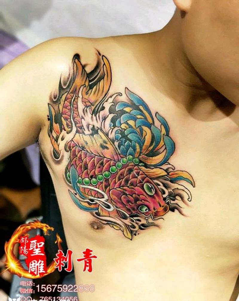 当前位置: 首页 >湖南省邵阳市纹身店-邵阳聖雕刺青纹身图案>锦鲤迎福-改旧图!!纹身图片