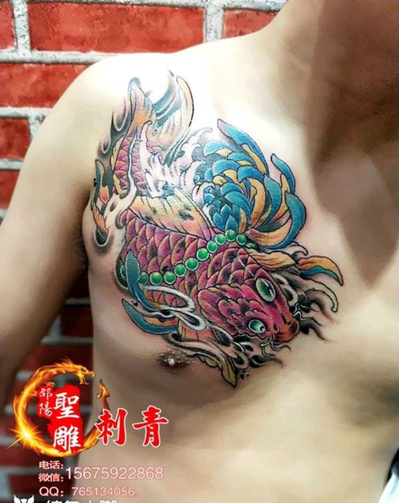当前位置: 首页 >湖南省邵阳市纹身店-邵阳聖雕刺青纹身图案>锦鲤迎福-改旧图!!纹身图片