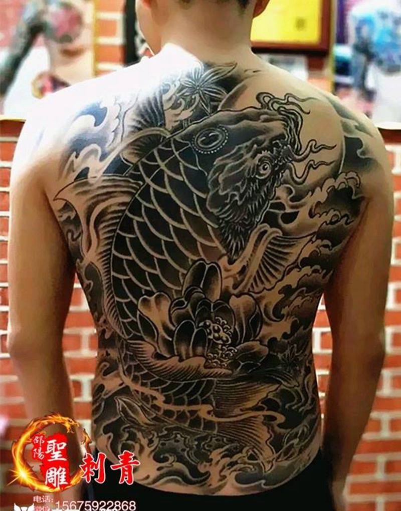 黑灰满背纹身图案