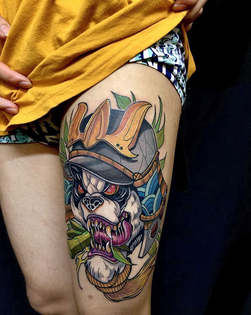 熊猫武士纹身图片_腿部New School纹身图案
