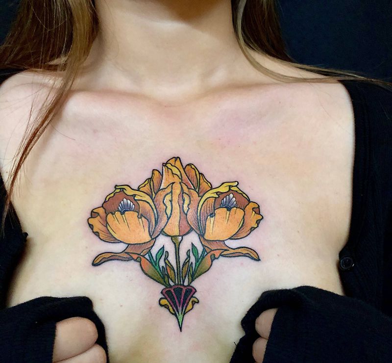遮盖小黄花纹身图片_胸部New School纹身图案