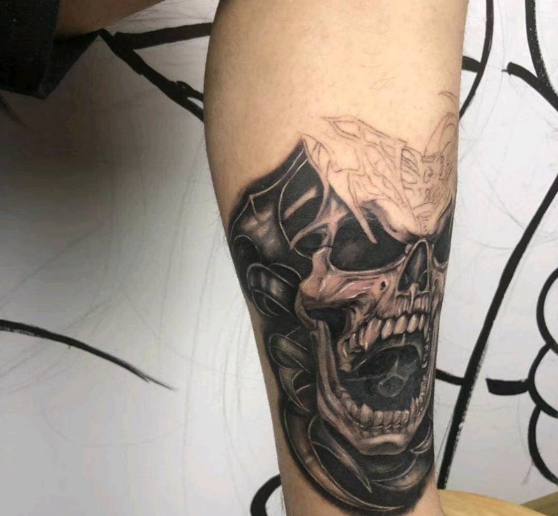 当前位置: 首页 >湖南省株洲市纹身店-九六刺青纹身图案>骷髅纹身图片_腿部欧美写实骷髅纹身图案