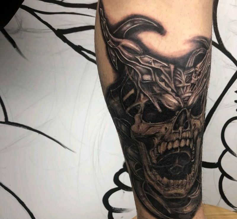 当前位置: 首页 >湖南省株洲市纹身店-九六刺青纹身图案>骷髅纹身图片_腿部欧美写实骷髅纹身图案