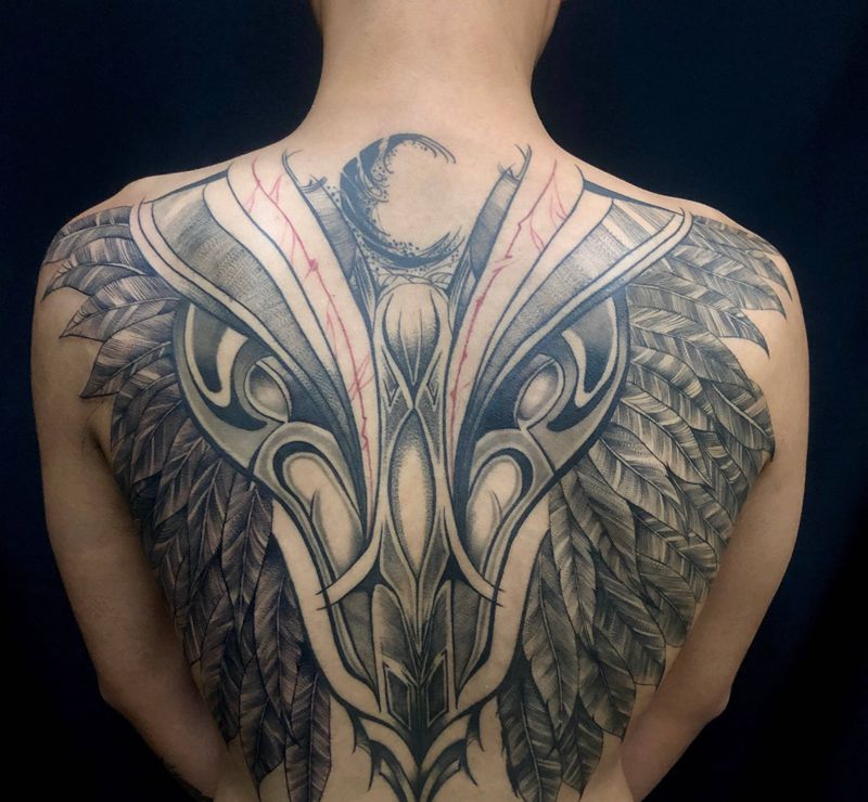 • 纹身吧推荐的披肩图腾半胛纹身图案作品展示