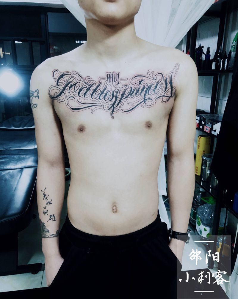 当前位置: 首页 >湖南省邵阳市纹身店-邵阳小刺客纹身图案>奇卡诺花体英文纹身图片_胸部花体字纹身图案