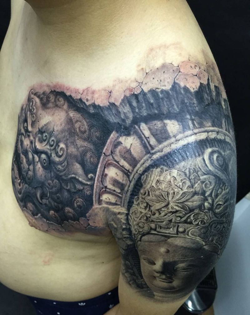 • 女性大花胸纹身_43张霸气漂亮的女性大花胸纹身图案作品