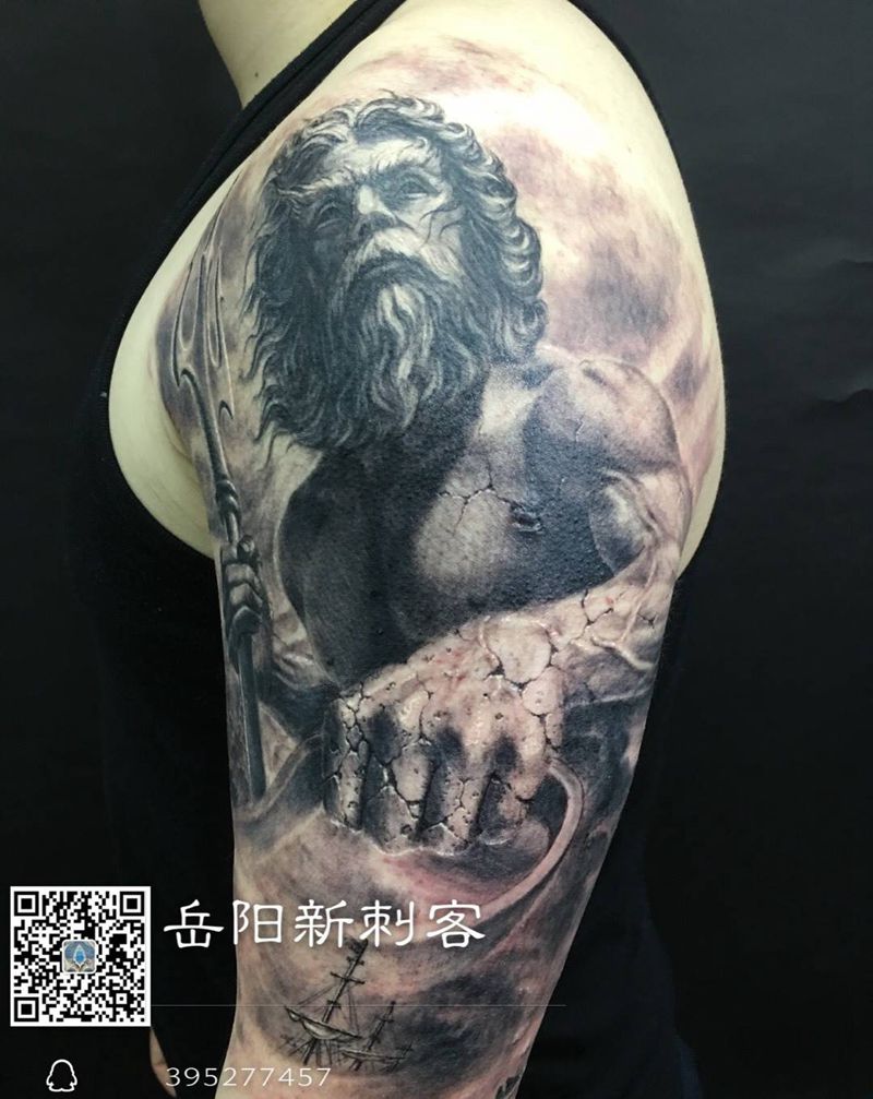 《驭浪》纹身图片_人物鬼神原创欧美写实手臂成品纹身图案