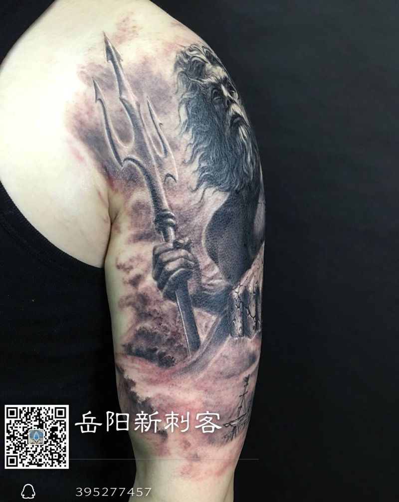 《驭浪》纹身图片_人物鬼神原创欧美写实手臂成品纹身图案