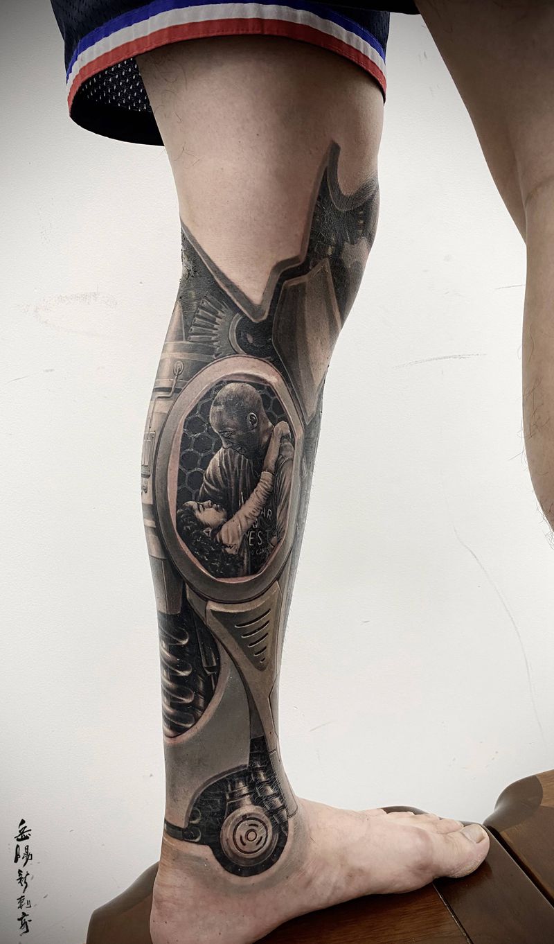 当前位置: 首页 >湖南省岳阳市纹身店-岳阳新刺客纹身图案>《未来战士-黑曼巴》纹身图片_腿部欧美写实机械科比纹身图案