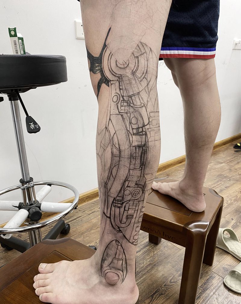 当前位置: 首页 >湖南省岳阳市纹身店-岳阳新刺客纹身图案>《未来战士-黑曼巴》纹身图片_腿部欧美写实机械科比纹身图案