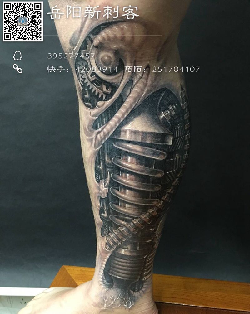 当前位置: 首页 >湖南省岳阳市纹身店-岳阳新刺客纹身图案>《生化机械腿》纹身图片_原创写实欧美成品腿部纹身图案