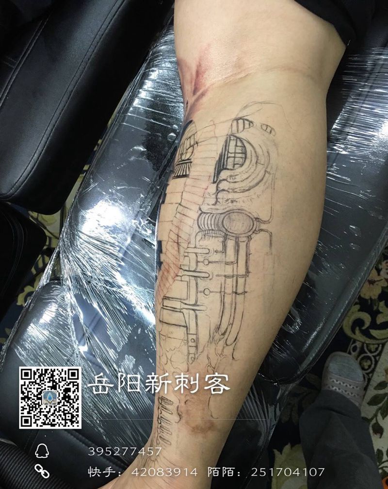 当前位置: 首页 >湖南省岳阳市纹身店-岳阳新刺客纹身图案>《生化机械腿》纹身图片_原创写实欧美成品腿部纹身图案