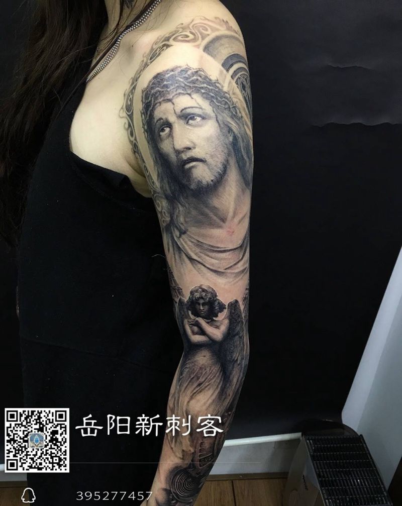 当前位置: 首页 >湖南省岳阳市纹身店-岳阳新刺客纹身图案>《祈祷》纹身图片_人物宗教写实手臂成品原创纹身图案