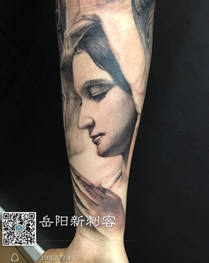 当前位置: 首页 >湖南省岳阳市纹身店-岳阳新刺客纹身图案>《祈祷》纹身图片_人物宗教写实手臂成品原创纹身图案