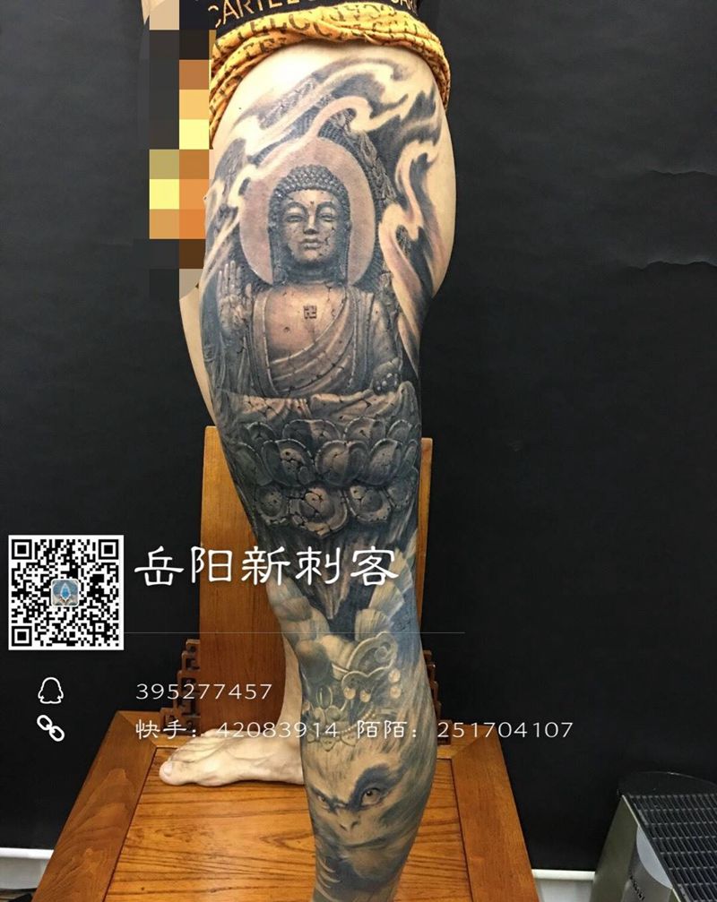 《斗战胜—成佛》纹身图片_人物鬼神腿部成品写实传统宗教原创纹身图案