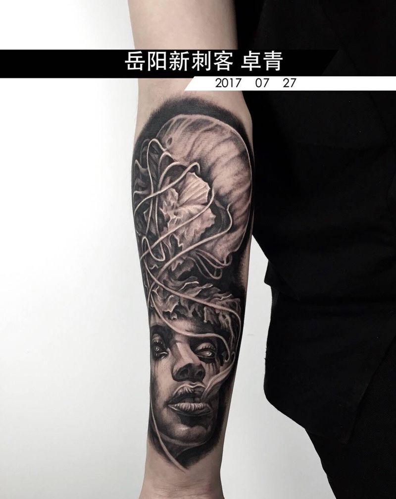 卓青纹身图片_手臂写实欧美人物成品纹身图案