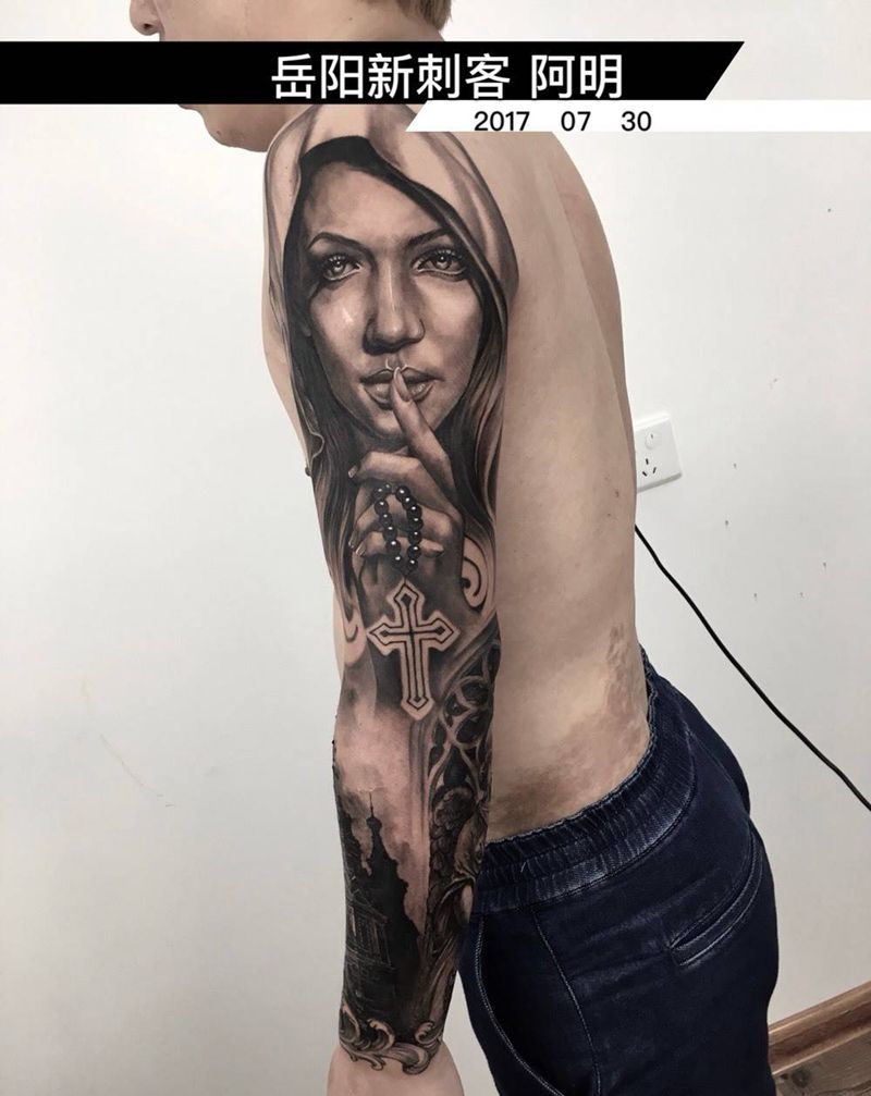 阿明作品纹身图片_欧美写实成品手臂人物肖像原创纹身图案